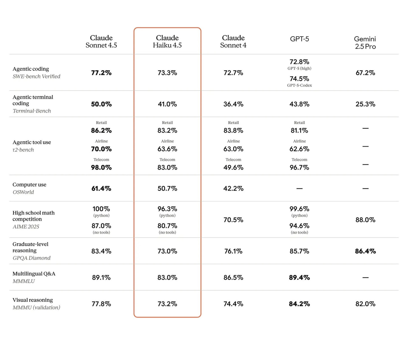 Anthropic’in iddiasına göre Haiku 4.5, çok daha büyük olan Sonnet 4.5 modelinin kodlama ve mantıksal akıl yürütme kabiliyetlerini neredeyse yakalıyor. Üstelik iki kat daha hızlı ve üçte bir maliyetle çalışıyor. Bu da modeli, canlı sohbet asistanları, müşteri hizmeti botları ve ortak kodlama araçları gibi gerçek zamanlı görevler için ideal hâle getiriyor.